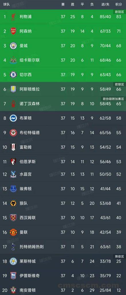 北京时间5月21日,随着曼城3-1伯恩茅斯、水晶宫4-2狼队的比赛结束,英超第37轮已经结束了所有比赛,我们一起看看最新的积分榜变动!