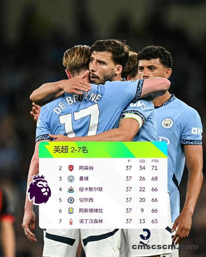 北京时间5月21日凌晨,英超第37轮的所有比赛全部结束,随着曼城3:1战胜伯恩茅斯,英超积分榜上的欧冠争夺更加激烈;本周末的最后一轮联赛,纽卡,切尔西,曼城,维拉,诺丁汉森林将为了最后3个欧冠席位展开最后的背水一战。