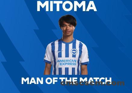 英超第37轮,布莱顿主场3-2逆转击败利物浦,此役替补登场打入一球的布莱顿边锋三笘薰当选英超官方全场最佳球员。