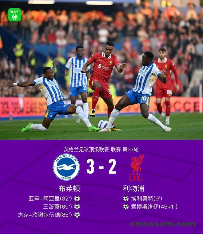 英格兰足球顶级联赛第37轮,布莱顿主场迎战利物浦。比赛中,利物浦由埃利奥特首开记录,随后布莱顿的亚辛-阿亚里迅 […]