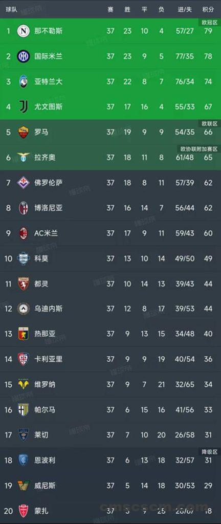 北京时间5月19日,意甲第37轮结束了所有比赛,我们一起看看最新的积分榜变动!