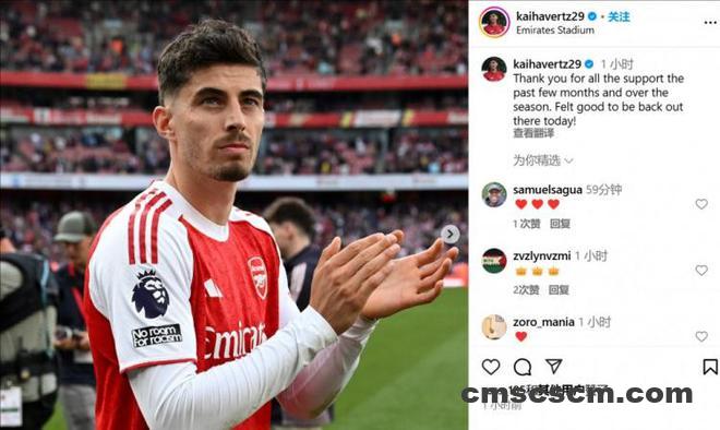 在阿森纳主场1-0击败纽卡斯尔联的英超第37轮比赛中,哈弗茨伤愈复出,时隔102天再度代表阿森纳出战,赛后,哈弗茨更新社交媒体,表示重返赛场的感觉真好。