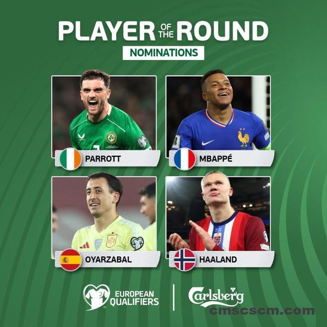 北京时间11月16日,欧足联官方公布了世预赛欧洲区本轮比赛最佳球员的四位候选者,帕罗特、姆巴佩、奥亚萨瓦尔以及哈兰德入围。