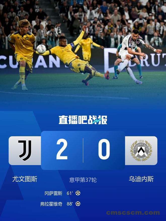 直播吧5月19日讯 意甲第37轮,尤文坐镇主场都灵安联球场迎战乌迪内斯。上半场,冈萨雷斯远射中柱。易边再战,冈萨雷斯爆射破僵,弗拉霍维奇锁定胜局。最终尤文2-0乌迪内斯。积分榜方面,尤文67分第四手握欧冠席位主动权,乌迪内斯44分第12。