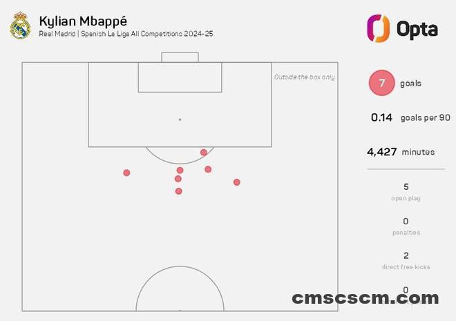 西甲第37轮,皇家马德里客场2-0击败塞维利亚,姆巴佩下半场远射破门,至此,姆巴佩本赛季各项赛事禁区外打入7球,与亚马尔并列五大联赛球员最多。