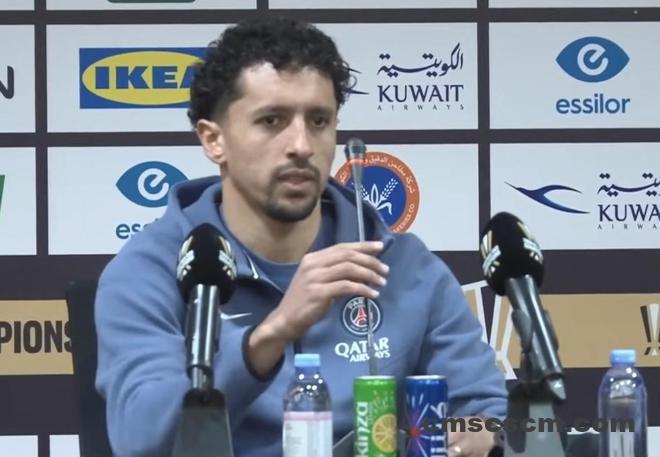 北京时间1月9日,法超杯决赛,巴黎圣日耳曼将对阵马赛。赛前,巴黎圣日耳曼球员马尔基尼奥斯出席了发布会。
