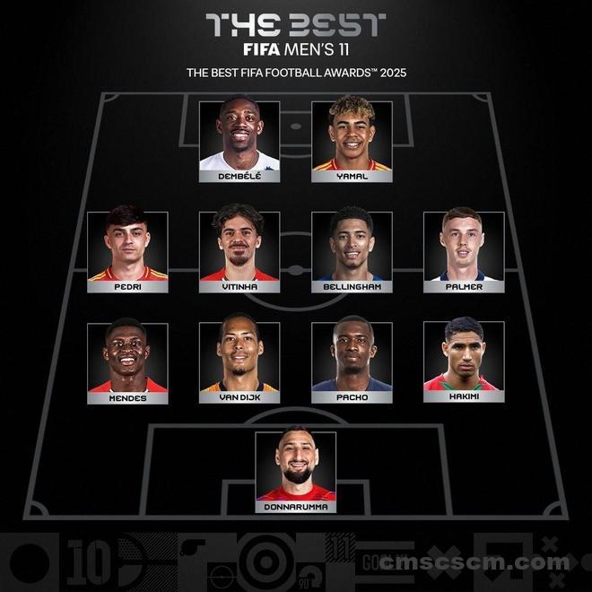 北京时间12月17日,2025年FIFA年度最佳男足11人阵容揭晓,这套阵容与此前FIFPro评选的年度最佳阵容有10名球员完全相同。