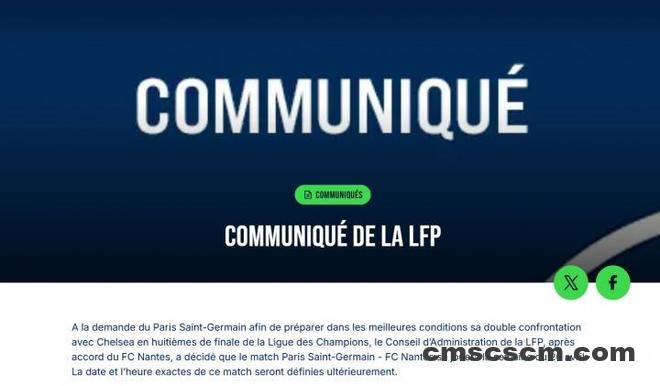 法甲联赛官方发布公告,确认法甲第29轮的朗斯对阵巴黎圣日耳曼、布雷斯特对阵斯特拉斯堡的两场比赛推迟至5月13日周三进行。在3天之前,朗斯俱乐部官方发布了声明,明确表示不希望本场比赛的日期发生改动,甚至将其形容为:“法甲联赛正逐渐沦为部分球队为满足欧洲赛事任务需求而随意调剂的工具。”不过,这并没有对法甲官方做出延期的决定造成影响,这场比赛明确延期。