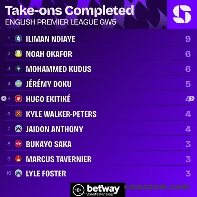 直播吧9月24日讯 英超第5轮战罢,squawkafootball列各项数据排行,埃弗顿边锋恩迪亚耶是完成过人 […]
