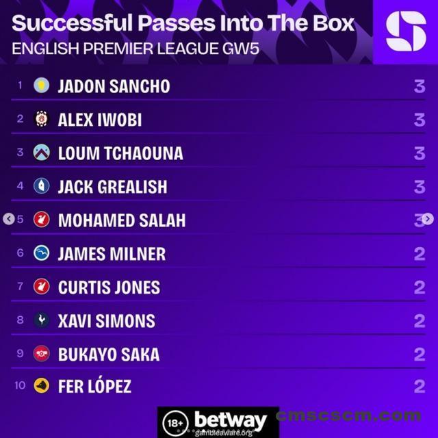 直播吧9月24日讯 英超第5轮战罢,squawkafootball列各项数据排行,桑乔等5名球员3次成功将球传 […]