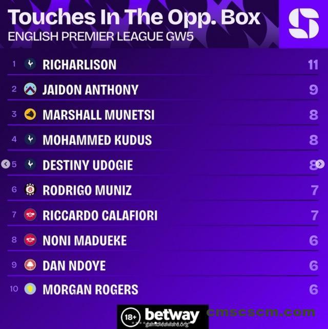 直播吧9月24日讯 英超第5轮战罢,squawkafootball列各项数据排行,热刺前锋理查利森是本轮在对方 […]