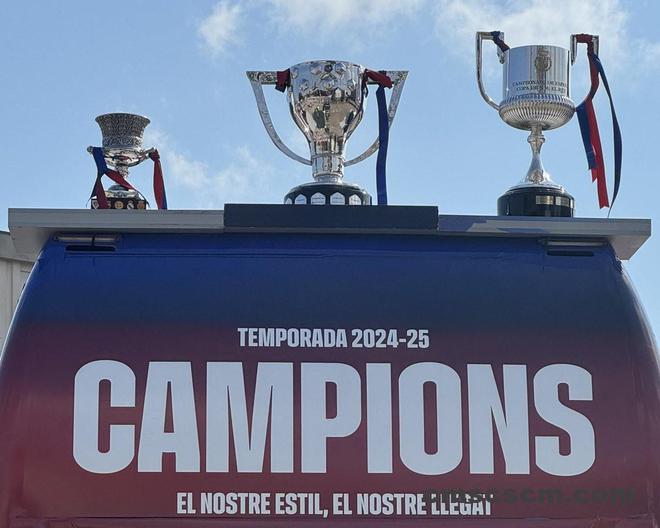 5月16日,巴塞罗那官方发布视频,夺冠游行的大巴已经准备就绪。