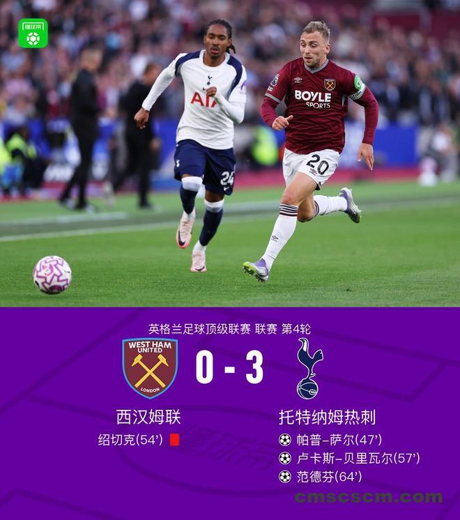 英超第4轮,热刺客场对阵西汉姆联,热刺19岁中场贝里瓦尔传射建功,成为热刺队史英超单场贡献传射第二年轻的球员。