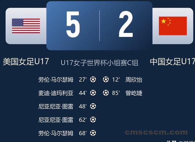 而图雷和马尔索姆各进一球直接锁定了胜局,虽然曾屹婕凭借任意球破门,为中国队扳回一城,但是结局已定中国队2:5败给了美国队。
