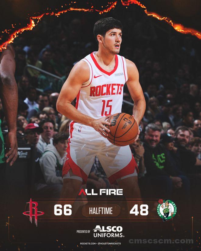 火箭队的杜兰特上半场得到20分和4个篮板,申京、史密斯和汤普森各得到6分;凯尔特人队的布朗得到10分和5次助攻,奎塔得到9分。