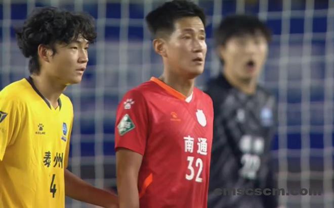 第26分钟,南通队再度制造威胁,一次任意球进攻开到了泰州队禁区内,李贤成近距离打门被门将挡出。