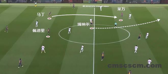 对手的确没有料到巴萨后腰从德容变成贝尔纳尔之后,会有这样的战术变化。事实上哪怕是使用卡萨多,也不会看到他前插进攻三区的肋部。