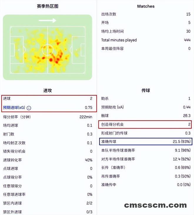 要知道他的预期进球才0.75,不得不说,贝尔纳尔在门前是真的有点东西。