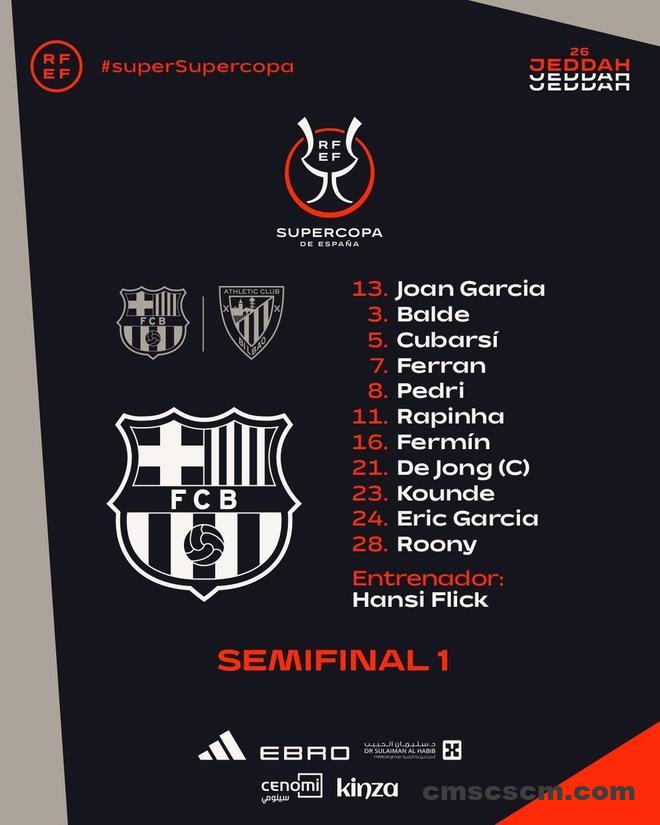 北京时间1月8日3:00,西超杯半决赛,巴萨对阵毕尔巴鄂竞技。赛前首发公布。