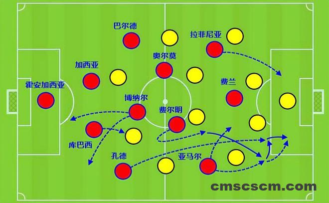 因为他的跑位,让亚马尔有更多的出球选择,既可以考虑传球,也能内切或者突破到禁区后自己攻击球门。