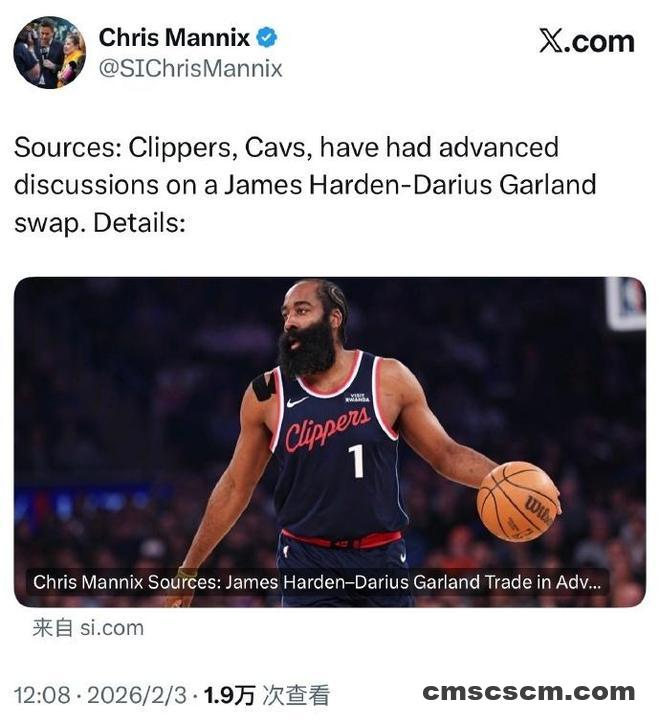 如今根据《体育画报》名记Chris Mannix报道,快船与骑士正深入讨论用哈登换加兰的交易,但其中尚且存在薪资匹配、选秀权补偿、球员意愿等关键障碍因素。