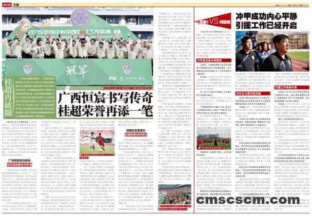 记者王伟、实习生李信报道2025中乙联赛,广西恒宸提前5轮冲甲成功,并提前3轮夺得队史首个职业联赛冠军,创造了广西职业足球的历史。10月24日,广西恒宸主教练刘俊威接受了本报独家专访。谈及冲甲成功,刘俊威心情很平和。展望下一步工作时他表示:“我们肯定会保留球队目前的主力框架,然后在各个位置上做一些针对性的补强。”