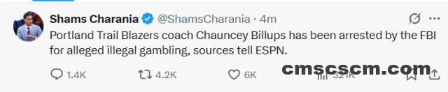 就在人们纷纷展望杨瀚森和开拓者的新赛季之旅时,波特兰方面却传来一则令人震惊的消息。根据查拉涅的报道,开拓者主教练比卢普斯因为涉嫌参与非法赌博,被FBI逮捕。据NBC率先报道,多位美国篮球圈内的名记也相继证实。