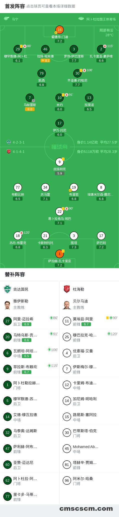 第117分钟,马赫雷斯任意球直接破门打破比赛僵局,吉达国民1-0杜海勒