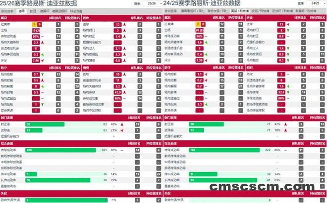 对阵霍芬海姆的比赛只是迪亚斯极致效率淋漓尽致的一次展现:单场5次射门4次射正,10次过人7次成功,传球成功率高达94.7%,而帽子戏法加两造垫也让其单场参与进球数追平拜仁队史边锋纪录。而将时间线拉至整个2025-26赛季,迪亚斯数据升级后的效率会更加明显。