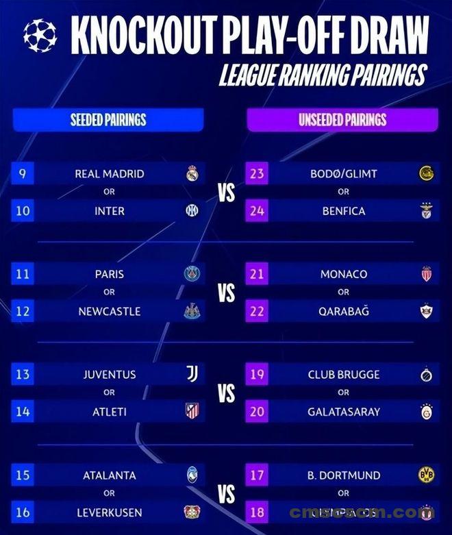 更值得注意的是,欧足联已彻底取消“同国回避”原则。这意味着从附加赛开始,同一联赛的球队就可能提前交锋——例如巴黎圣日耳曼对阵摩纳哥;甚至可能出现“老对手重逢”的局面,比如皇马再次遭遇本菲卡——正是后者在联赛阶段末轮以4比2击溃皇马,直接导致后者跌入附加赛。
