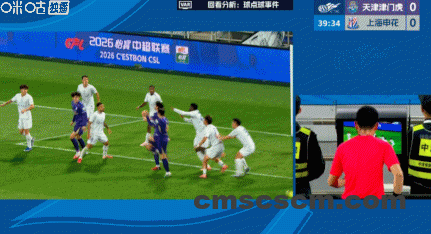 第13分钟,津门虎球员投诉对方禁区内手球,主裁判未予理睬