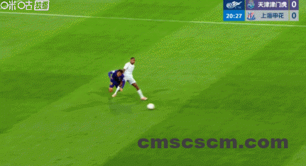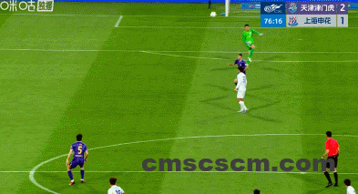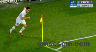 第45+4分钟,朱辰杰头球经格劳折射破门,申花1-1半场读秒扳平津门虎!