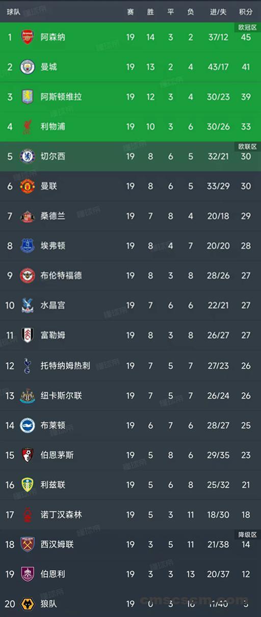 英超最新积分榜