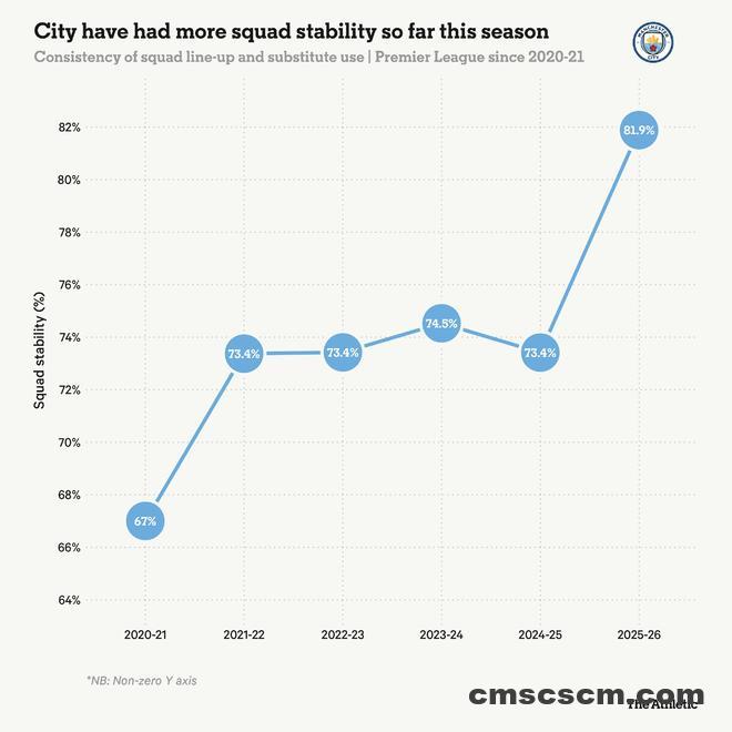 格拉斯纳的同行、曼城主帅佩普-瓜迪奥拉通常以喜欢调整阵容而闻名,但本赛季他已显著偏离了他惯常的轮换政策。瓜迪奥拉已经有四次派出了完全相同的首发十一人。作为对比,这在16场比赛中的次数,比之前三个完整赛季(114场英超比赛)加起来还要多。