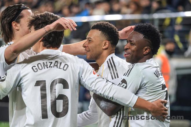 补时阶段,比利亚雷亚尔中路反击,盖耶带球推到禁区弧顶前左脚大力兜射,皮球稍稍偏出门柱出了底线。上半时双方都无力破门,半场0:0互交白卷。易边再战皇马加强进攻,开场仅1分钟,皇马左路压上,姆巴佩禁区前沿斜塞,维尼修斯禁区边上接球强行突破纳瓦罗的防守,突到倒三角处回传,盖耶回防失误,只是将球拦下,没有挡出去,姆巴佩机敏跟进小禁区内小角度大力推射,皮球直入网窝,皇马1:0打破僵局。第55分钟,比利亚雷亚尔中场长传发动进攻,莫雷诺突入禁区右侧获得不错机会,只是他直接凌空推射打偏了。