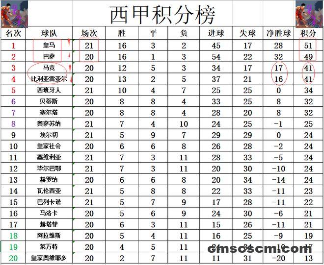 积分榜方面,皇马上半程一度5分优势力压巴萨领跑,但后来反过来被巴萨反超,今天先赛客场击败强敌后,皇马终于是以2分优势暂时夺回了榜首位置。比利亚雷亚尔完败后,差马竞一个净胜球,跌出前3。
