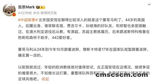 此前,有媒体透露一支中超北方俱乐部,与44岁澳超冠军主帅蒙哥马利接触。而北京时间12月19日,知名记者苗原证实,有意蒙哥马利的中超俱乐部正是老牌豪门北京国安。
