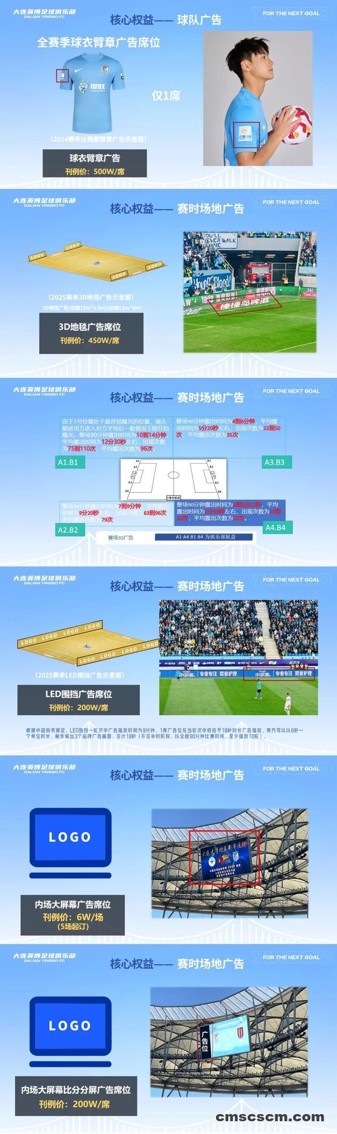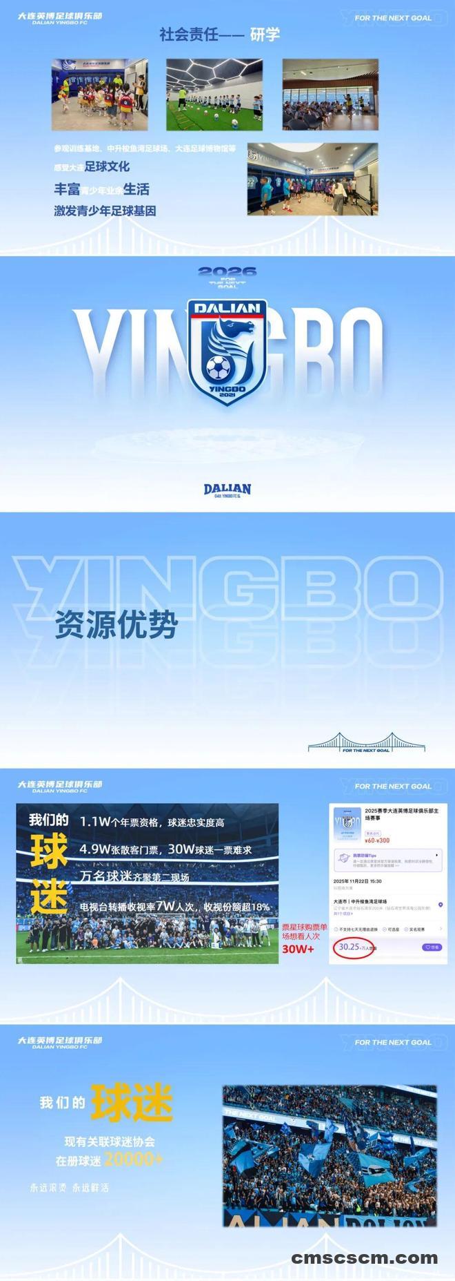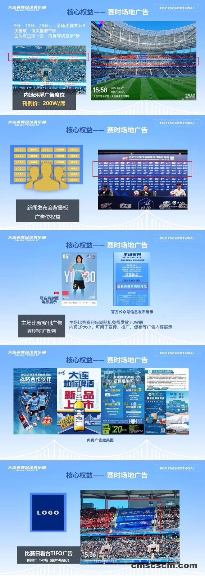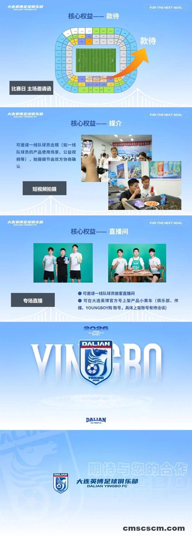 大连英博发布2026中超招商合作手册,现面向市场公开招商,涵盖球队冠名权、球衣胸前广告、球衣背后广告等权益。