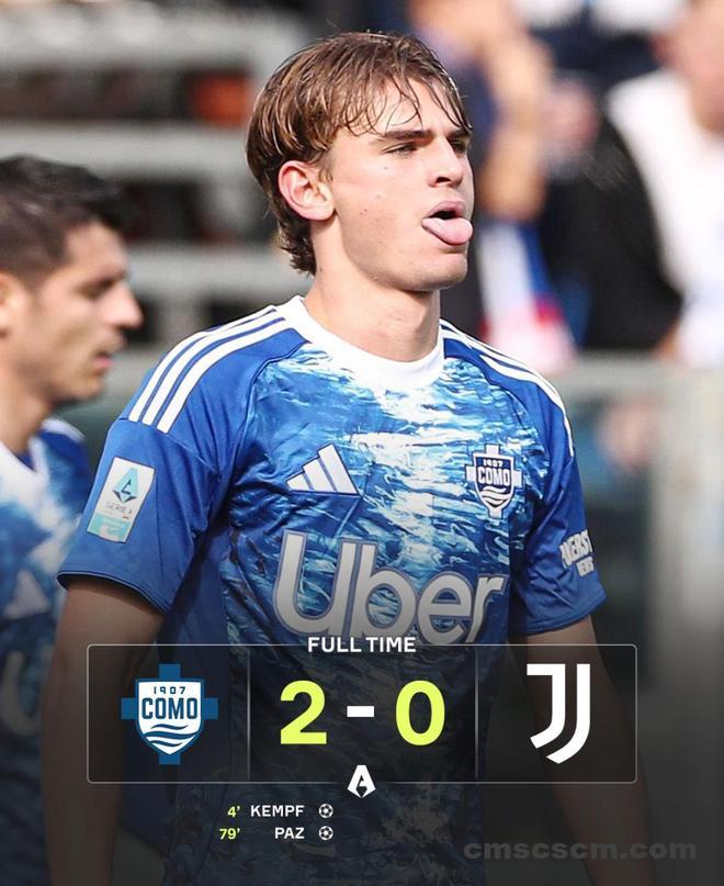 易边再战,尤文主帅试图通过换人调整节奏,但科莫的防守依旧稳如铁桶。到了第79分钟,尼科·帕斯在中场拿球后一路推进,面对布雷默的防守,他轻轻一扣晃开角度,左脚搓射划出完美弧线,皮球直挂死角,科莫2-0尤文图斯,基本锁定胜局,最终比分也定格在此。