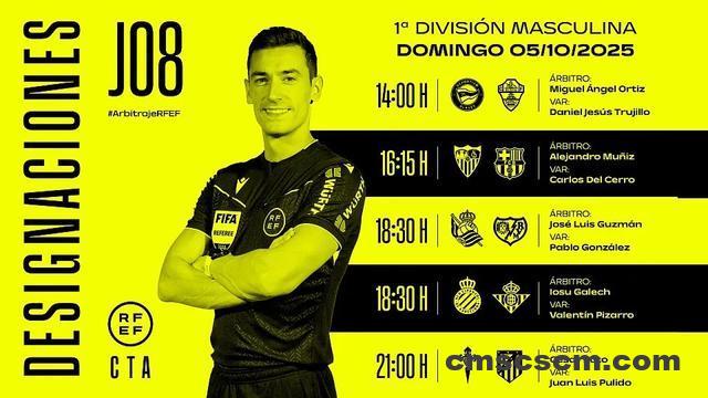 10月4日,西班牙足协官方公布了周日西甲比赛的裁判安排,亚历杭德罗-穆尼斯将执法塞维利亚vs巴塞罗那。